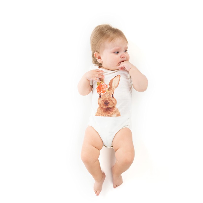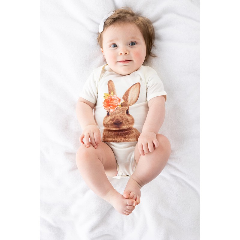 Funky Junque Unisex Baby Short Sleeve Onesies Bodysuits Cute Graphic Design Baby Essentials, Floral Bunny, S - 0-6 Months