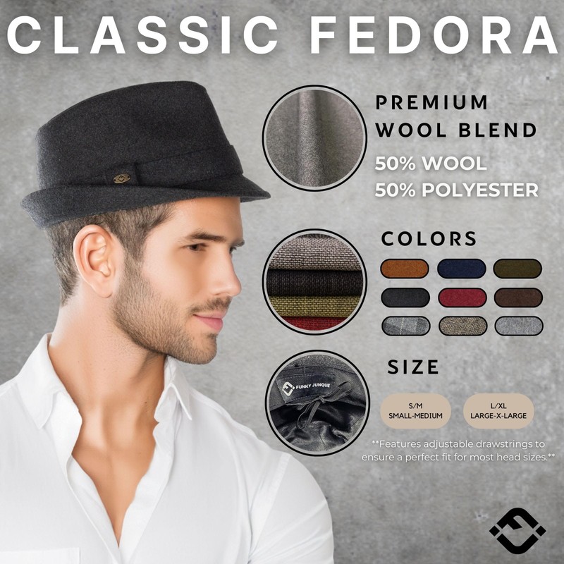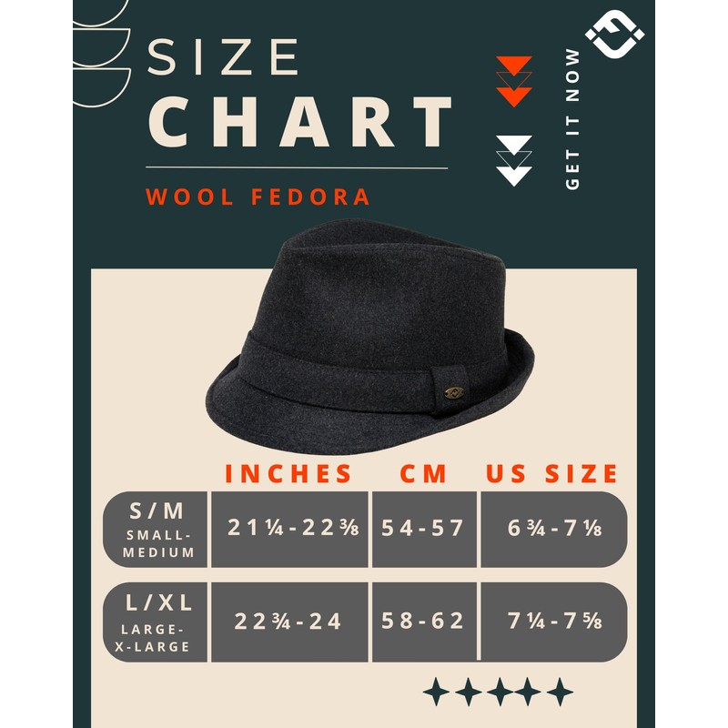 - GREAT FIT: For the best fit of this mens fedora, select size Small/Medium if your head circumference is between 21 1/4 inches to 22 3/8 inches, which corresponds to fitted size 6 3/4 to 7 1/8 (54-57 cm). Select size Large/X-Large if your head circumference is between 22 3/4 inches to 23 7/8 inches, which corresponds to fitted size 7 1/4 to 7 5/8 (58-61 cm). Additionally, this flat brim hats for men is equipped with adjustable drawstrings to ensure a perfect fit for most head sizes.