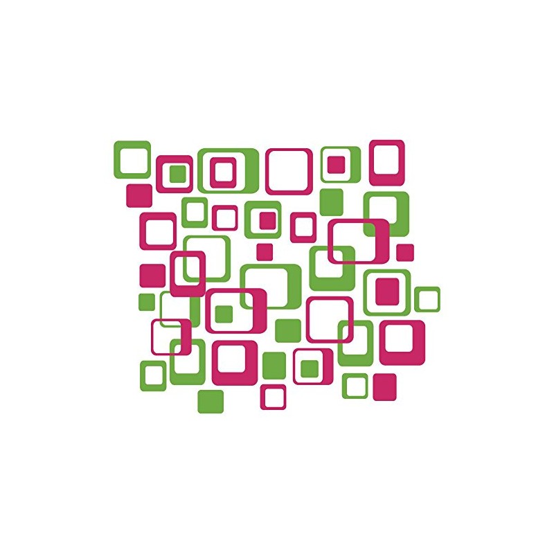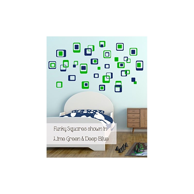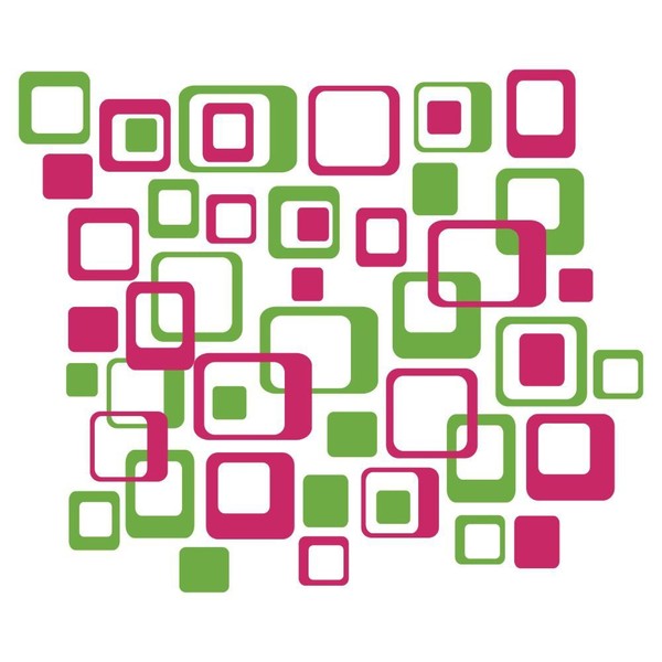 Funky R/Squares Wall Sticker Vinyl Decal 40 Piece 2 Color Retro Mod Shapes Fun Easy Peel-N-Stick Application - Hot Pink and Lime Green
