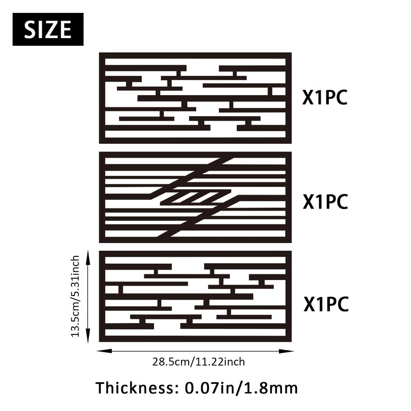 - Size: 11.22"X5.31"/13.5X28.5CM, Thickness: 0.07in/1.8mm. Include 3PCS, can cover 1.24sq.ft