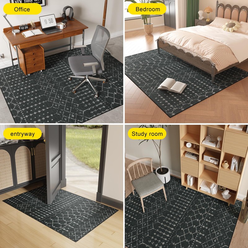 - STYLISH BLACK PATTERN DESIGN: Our area rug features a classic black pattern, offering a modern and elegant touch that complements various home styles. Whether in the office, living room, or bedroom, it enhances the ambiance with sophistication.
