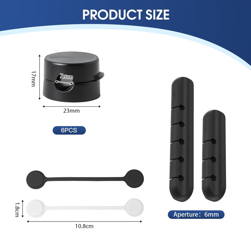 - 【Convenient Package】: Our set consists of 6 desk storage items including 6 clip holders, 2 silicone cable winders and 2 cable clips. Get rid of your cluttered desk in one fell swoop, and the 7.5mm slot diameter fits charging heads perfectly, making the FunnAura cable clips a must-have for all your cable management needs