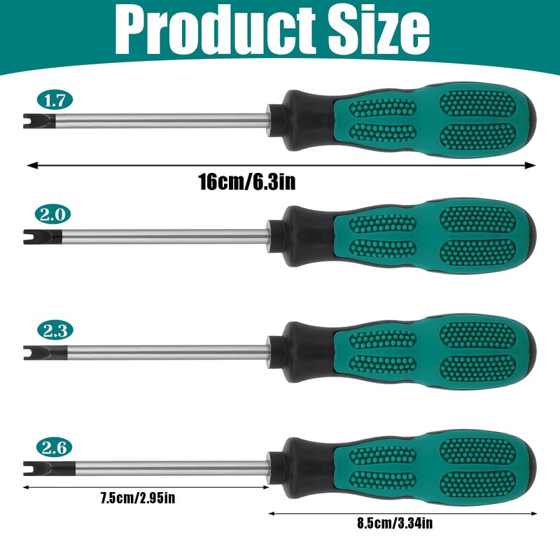 - Size: The U fork screwdriver set provides you with 4 pcs special-shaped screwdrivers, ideal for repair. The precision steel screwdriver has a total length of 16 cm / 6.3 inch, a shank length of 7.5 cm / 2.95 inch, a handle length of 8.5 cm / 3.34 inch