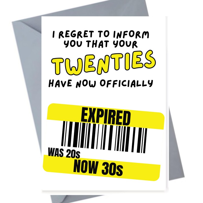 Funny 30th Birthday Cards for Men Women - Your Twenties Have Expired - Happy Birthday Card for Him Her Friend Cousin Work Colleague