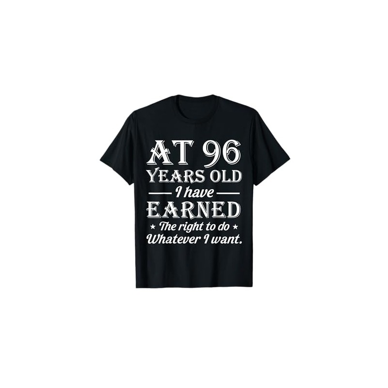 • At 96 years old I Have The Right To Do Whatever I Want funny birthday tee makes a perfect 96th birthday gifts for 96 year old men women, mom dad grandma grandpa uncle aunt brother sister friends old people who is about to celebrate 96th birthday party soon