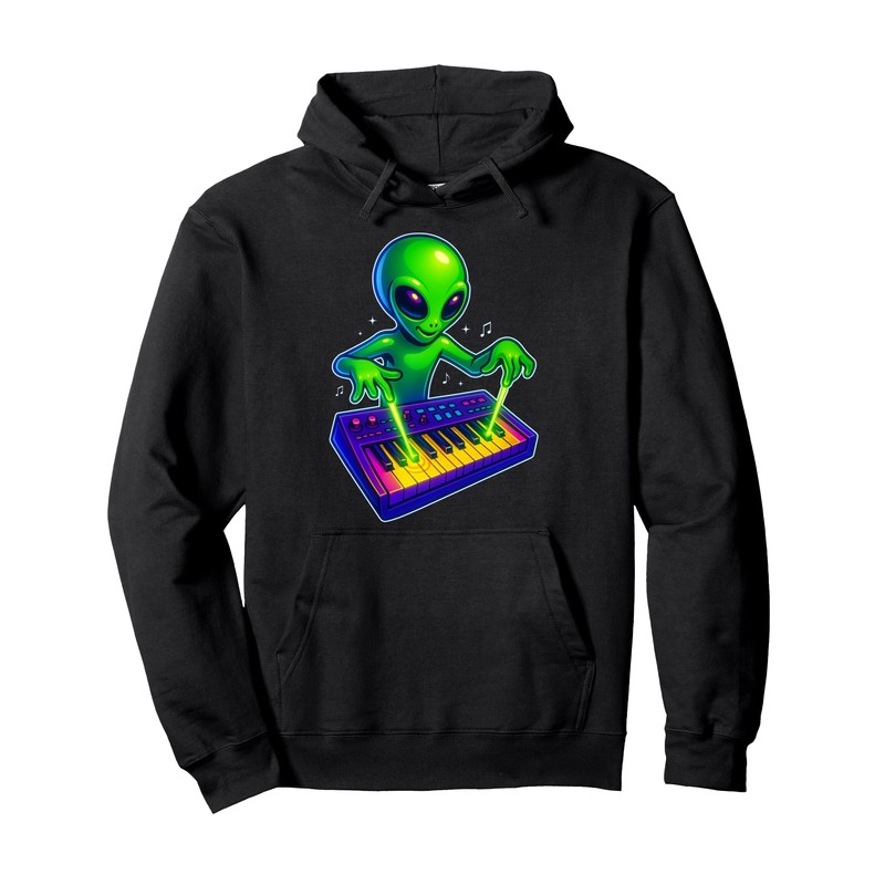 Funny Alien Playing Synth Electronic Music Space EDM Pullover Hoodie