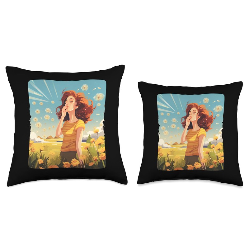 Funny Allergy sufferers Funny Cute Girl sniffle-Free and Trendy for Allergy Sufferer Throw Pillow, 16x16, Multicolor