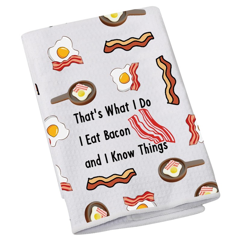 Funny Bacon Lovers Nerd Gift That's What I Do I Read Eat Bacon and I Know Things Kitchen Towel Foodie Meat Dish Towel (I Read Eat Bacon)