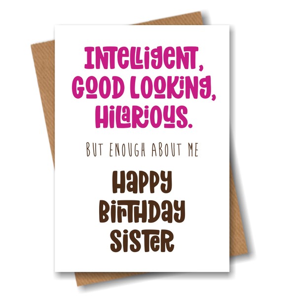 Funny Birthday Card for Sister - Intelligent, Good Looking, Hilarious.