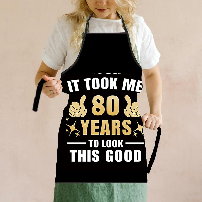 - Humorous Gift: This funny apron with the cheeky slogan 'It Took Me 80 Years to Look This Good' is the perfect novelty gift for celebrating milestone birthdays.