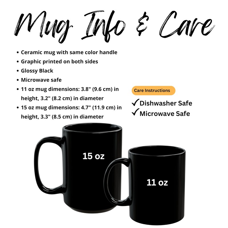 - 11oz or 15oz Black Ceramic Mug – Available in two sizes to suit any drink preference.