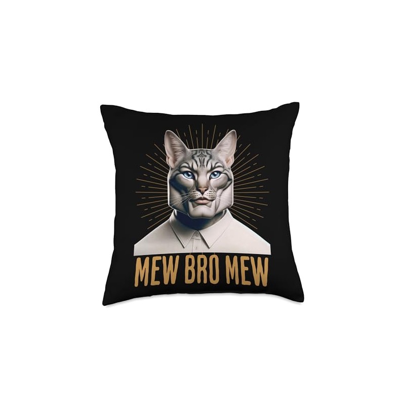 Funny Bootleg Mewing Cat Looksmaxxing Meme Mew Bro Mew Throw Pillow