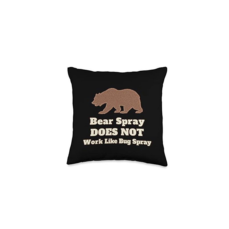 Funny Camping Bear Spray Does Not Work Like Bug Spray Throw Pillow