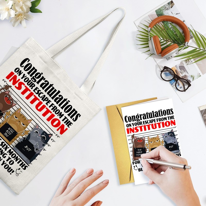 Funny Canvas Tote Bag with Card, Womens Tote Bag Card Leaving Presents for Colleagues, Funny Leaving Gifts for Colleagues Women, Reusable Canvas Bag Retirement Gifts Congratulations on Your New Job