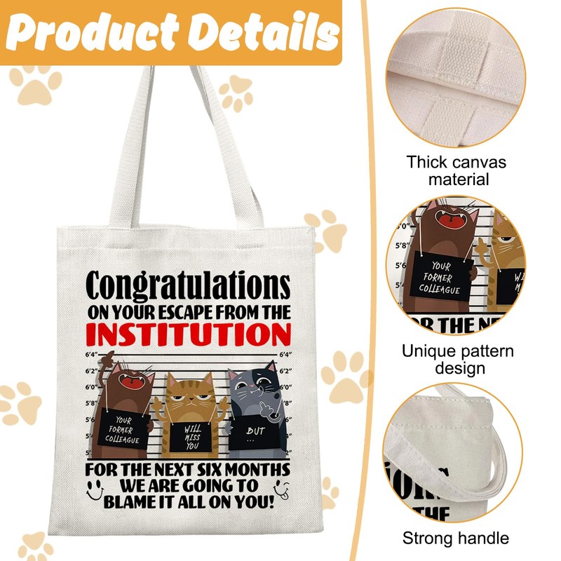- Greeting Card Set Included: Funny leaving card is included , which matches the canvas bag and adds a thoughtful little surprise. The combination of the handbag and greeting cards makes the gift more complete