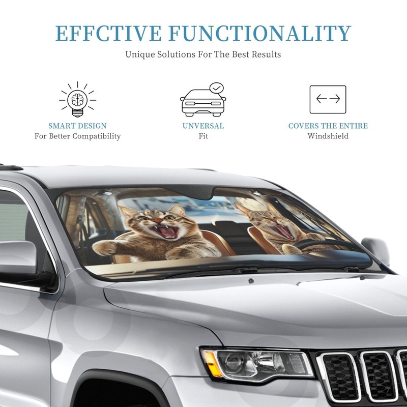 Funny Cat Car Windshield Sun Shade Cute Cats Foldable Sunshades Front Sun Visor Window Shades Cover Automotive Interior Protector Blocks Uv Rays 55" L X 30" W