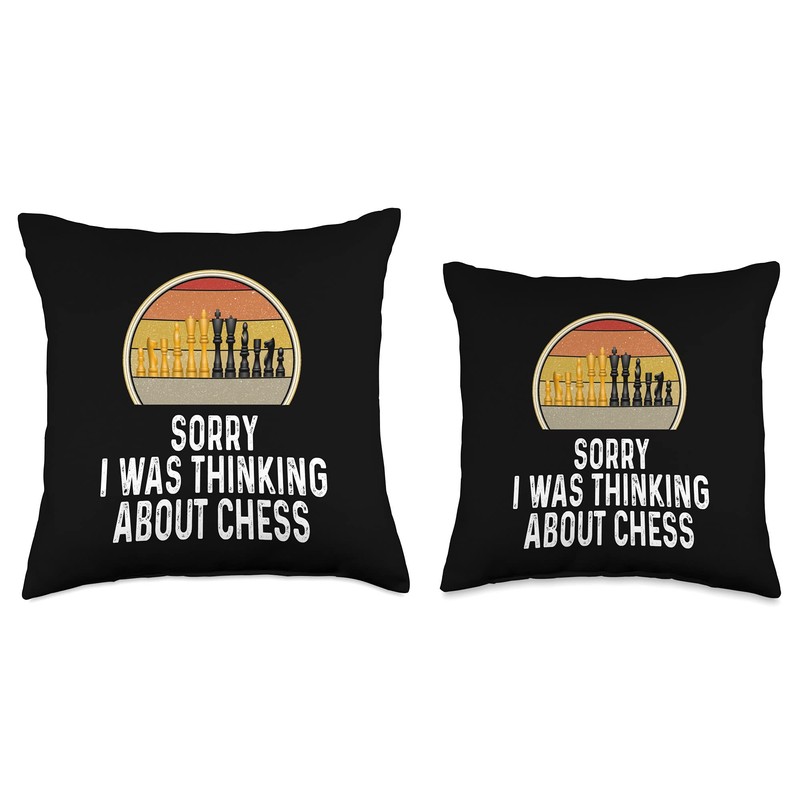 Funny Chess Gifts Funny Sorry I was Thinking About Chess Player Board Game Throw Pillow, 18x18, Multicolor