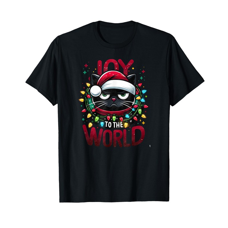 Funny Christmas Black Cat Joy to The World T-Shirt