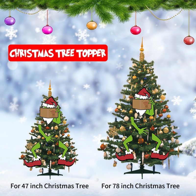 - 【Great Christmas Atmosphere】 The decorations incorporate the classic red, white, and green color scheme of Christmas elements, together with cute and quirky cartoon images, presenting a unique festive style and adding a touch of bright features to your Christmas tree. Funny green Elf hiding mischievously behind a golden book, eye-catching and interesting, Hold a phone book with an alphabetically printed "Greater WHOWILLE Telephone Directory" Fun Christmas tree topper!