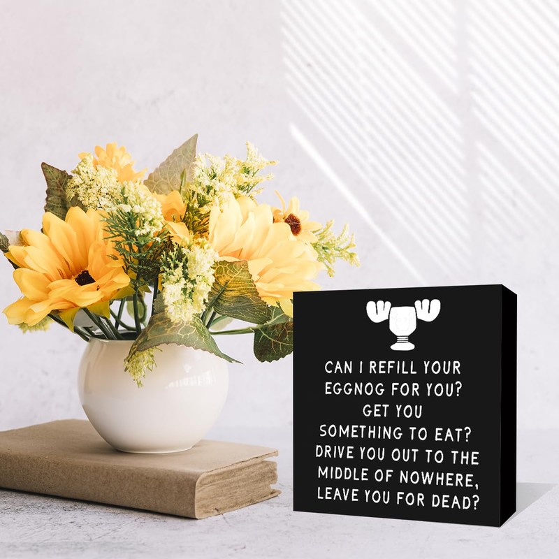 Funny Christmas Vacation Decorations, I Refill Your Eggnog Wooden Box Sign 5x5 Inch, Knick Knacks for Home Kitchen Office Desk Shelf Table Decor