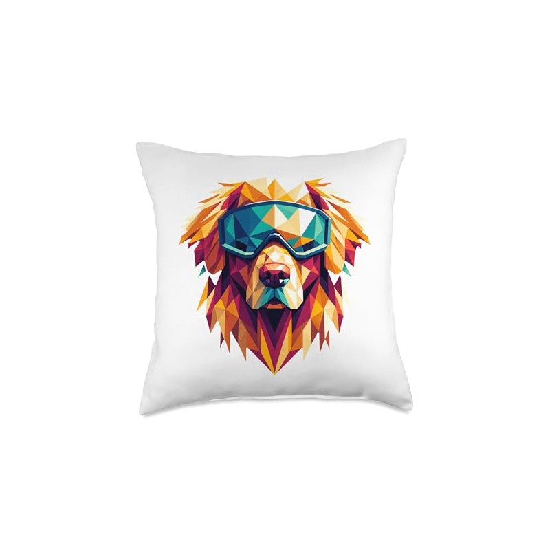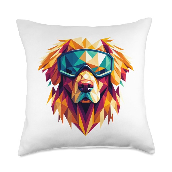 Funny Cool Dogs Wearing Ski Goggles Golden Retriever Dog Wearing Ski Snowboard Goggles Geometric Throw Pillow, 18x18, Multicolor