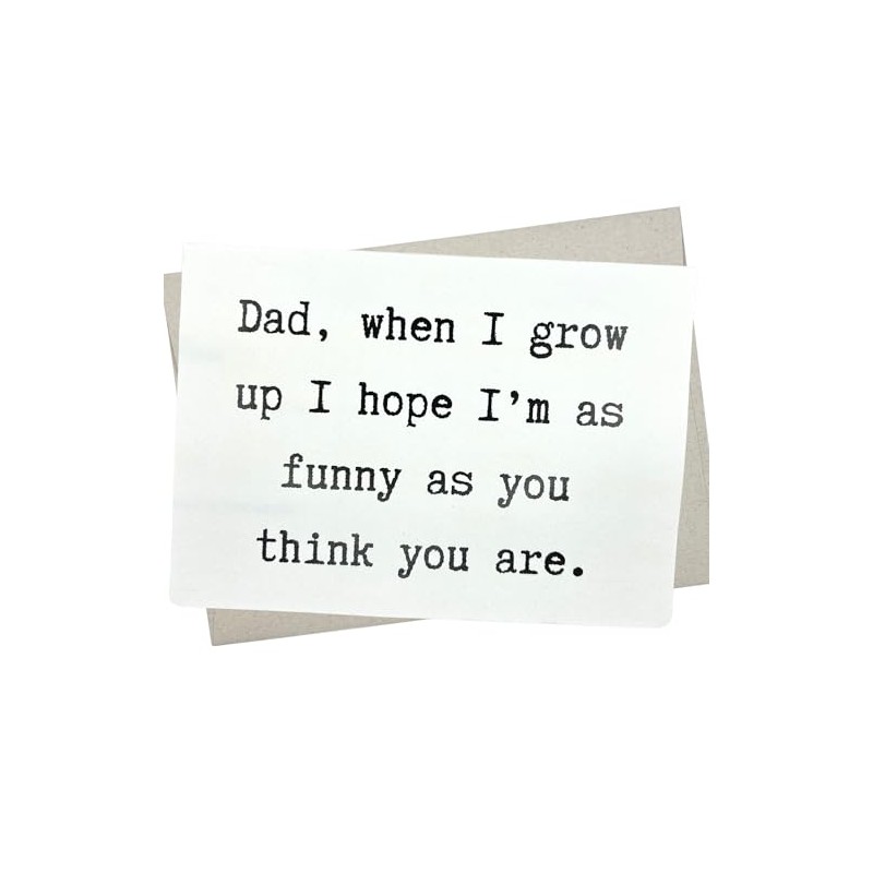 • The inside of the card is blank for your own message but the outside reads "Dad, When I grow up I hope I'm as funny as you think you are."