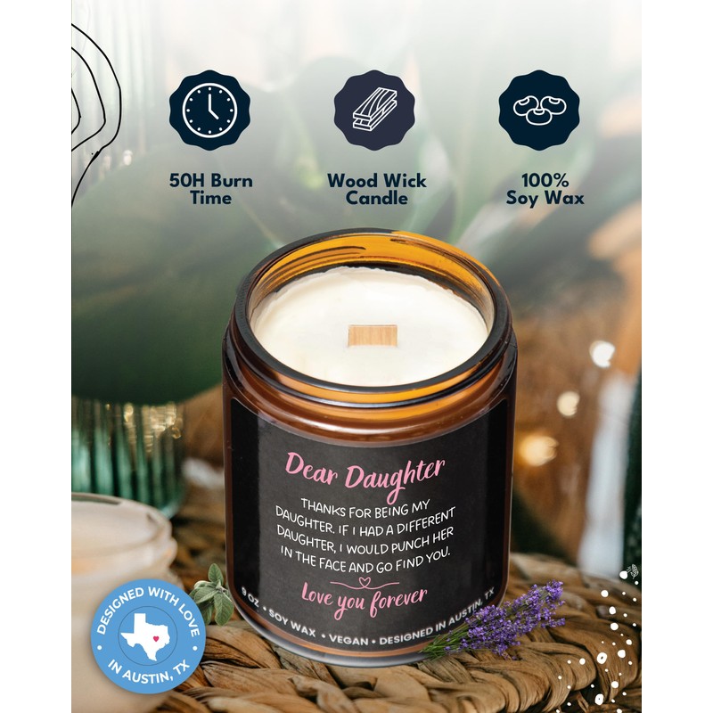 - đź’ Funny Gifts for Daughter: These woodwick candles are a thoughtful and fun way of sending love & appreciation to your daughter ! It is an ideal gift for birthday, Mothers Day, Christmas, or any special occasions. Funny daughter gifts from mom and dad & daughter birthday gift!