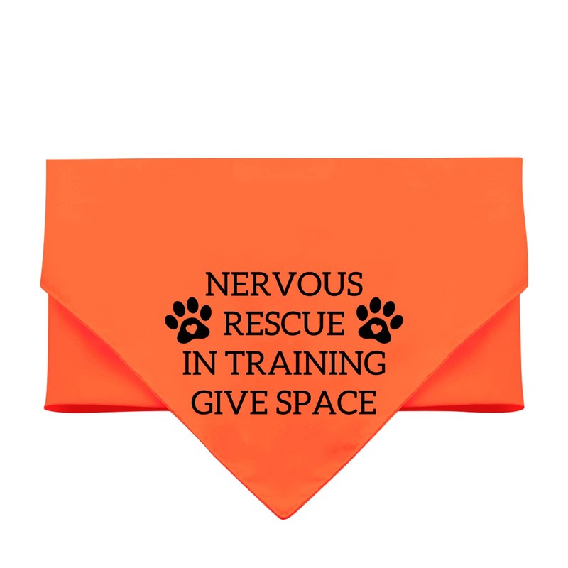 - Package includes Pet Scarf with same saying: "Nervous Rescue in Training Give Space". funny dog bandans for your lovely dog cat puppy.