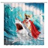 - Funny animal shower curtain: Add a humorous touch to your bathroom with the cute Corgi riding a shark, surrounded by ocean waves and seagulls.