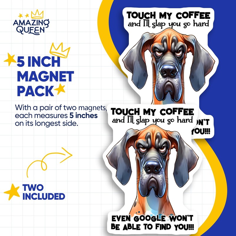 Funny Dog Magnets - Coffee Quote - Great Dane Art - 2 Pack - 5" Wide Design - Sticks to Fridges, Lockers, Toolboxes & More - Made in USA - AQM3443