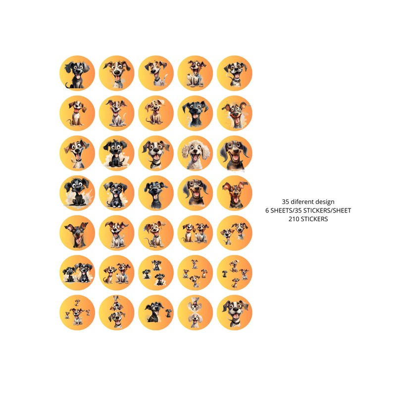 - * 35 UNIQUE DOG DESIGNS :You will receive 6 sheets with 35 stickers each sheet making a total of 210 fun stickers.