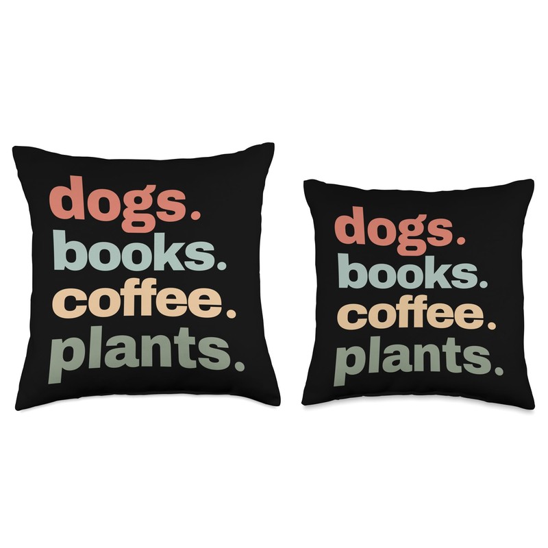Funny Dogs Books Coffee Plant Lover Gardening Mothers Day Throw Pillow