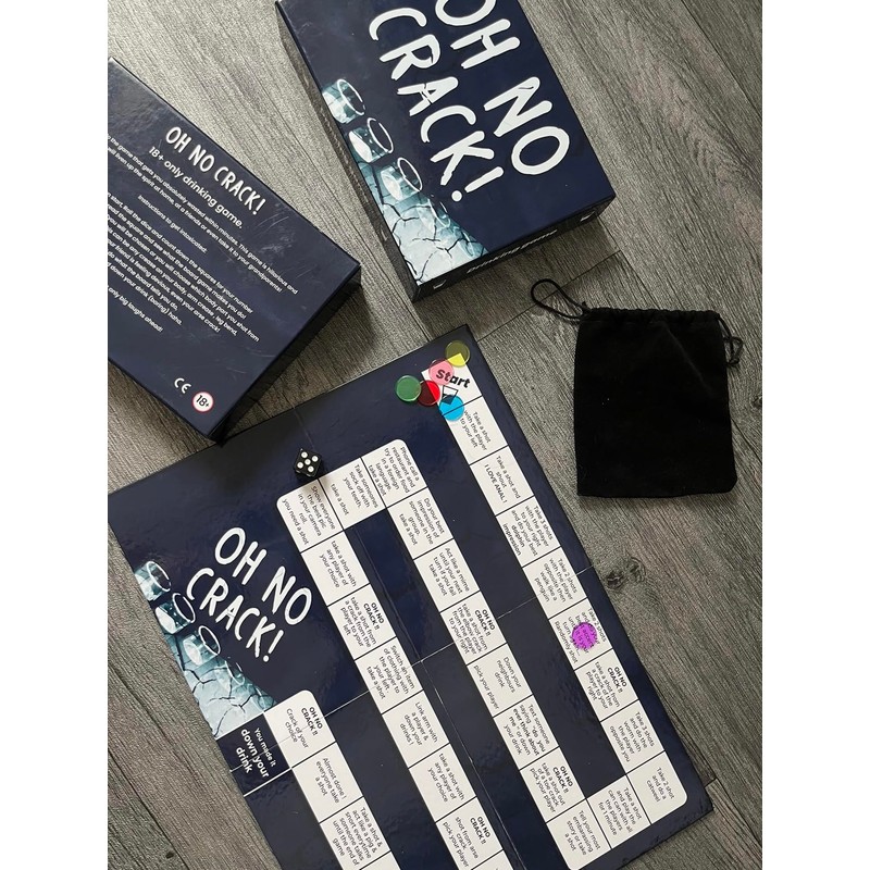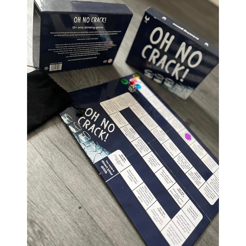 Get ready to turn your ordinary evenings into unforgettable, uproarious nights with OH NO CRACK! - The Ultimate Drinking Board Game for Hilarious Adventures! 🎉 Prepare for epic laughter and memories that will be talked about for ages with OH NO CRACK! This electrifying drinking board game, tailor-made for up to 6 players, is your golden ticket to taking your gatherings to a whole new level of entertainment. So, are you up for the dice-rolling, hilarity-unleashing, side-splitting extravaganza? 🎲😂 Inside the box, a world of laughter awaits. OH NO CRACK! includes a dice and 6 sturdy plastic discs, ensuring that your party will be brimming with hours of joy and endless chuckles. Assemble your friends, position your discs on the starting square, and get ready to unleash the hilarity like never before! 🤣🥳 How to Play: The rules of OH NO CRACK! are not only simple but also intoxicatingly fun. Roll the dice, count down the squares as per your number, and place your disc. Then, brace yourself for the sidesplitting surprises that each square conceals. Prepare for the unexpected, as every square is a clever concoction designed to keep the good times flowing with well-timed sips of spirits. But, there's a twist! When you land on the "oh no crack!" square, get ready for some outrageous choices that will keep you and your friends in stitches. 😆🍻 Please note: OH NO CRACK! is a game for the grown-ups, intended for players aged 18 and above. As you enjoy the game, we encourage you to drink responsibly and be mindful of your limits. 🍹🚫 It's time to order your very own OH NO CRACK! and make your next gathering an unforgettable, laughter-infused experience. Get ready to roll the dice and let the good times flow! 🛒🎉
