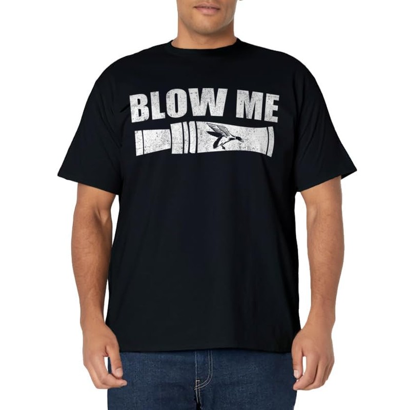- Funny Duck Hunting top featuring a duck call with the phrase Blow Me in a distressed print. Check out our brand for more Duck and Goose hunting shirts for dad or grandpa.