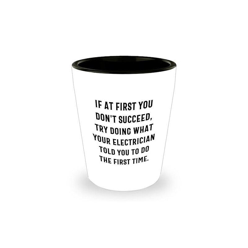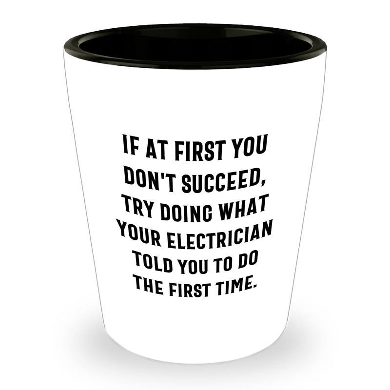 - Surprise the Electrician in your life with this humorous and functional 'If At First You Don't Succeed, Try Doing What Your Electrician Told You To Do The First Time' Shot Glass, a ideal gift for Electrician enthusiasts.