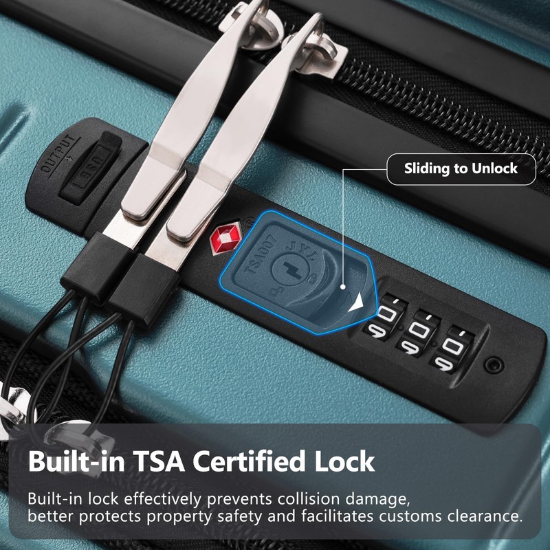 - USB Port: Stay connected on the go by charging your devices directly from your suitcase. (Power bank not included)