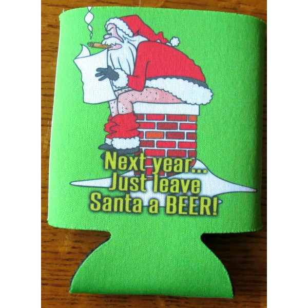 FUNNY/FESTIVE CAN/BOTTLE HOLDER KOOZIE/COOZIE! CHRISTMAS! LEAVE SANTA A BEER!