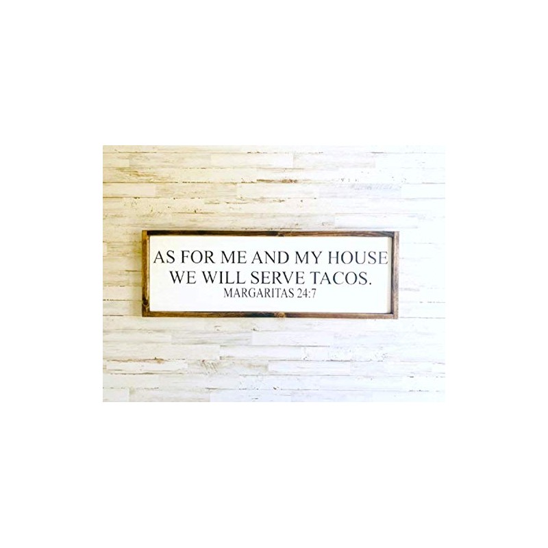 Funny Framed Rustic Wood Taco Sign, As for Me and My House We Will Serve Tacos Margaritas 24:7-833504