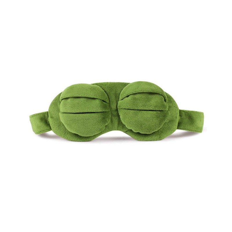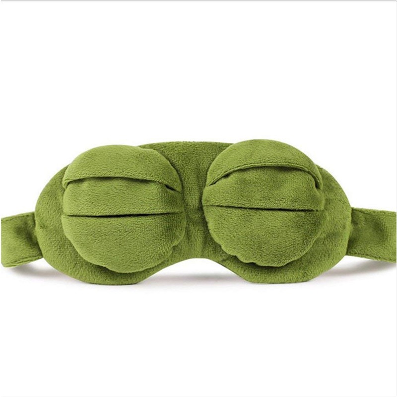 Funny Frog Pepe Sad Frog 3D Eye Mask Cover Cartoon Plush Sleeping Mask (Green 90g without Ice Bag)