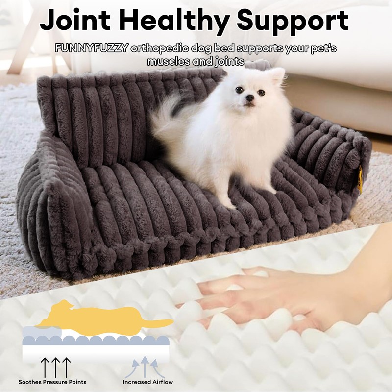 FUNNY FUZZY Dog Bed for Medium Large Dogs - Orthopedic Dog Sofa with Removable Washable Cover and Anti-Slip Bottom, Supportive Foam Pet Couch Bed, Dark Grey, XL