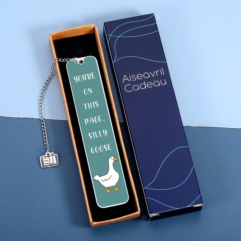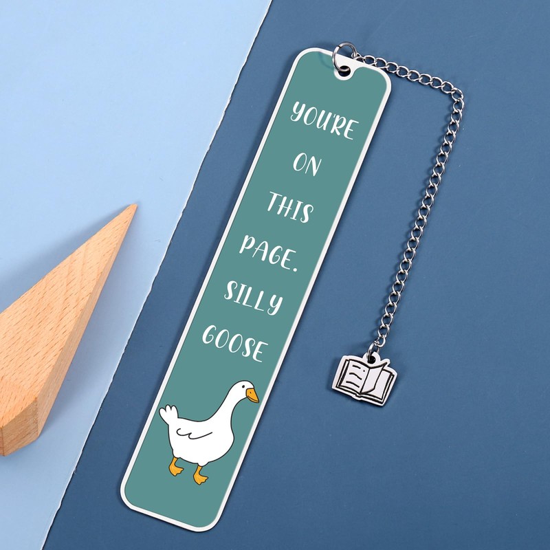 - Whimsical Design: Charming silly goose bookmark that adds a playful touch to your reading experience. The cute goose bookmark engraved with "YOU'RE ON THIS PAGE. SILLY GOOSE" and a small book pendant. With funny sayings, cute fonts and patterns, this book mark will help book lovers relax and smile as they read. Suitable as the reading accessories gifts for spicy readers bookish book nerds book lovers. Funny white elephant gifts for adults useful, white elephant gifts for adults funny