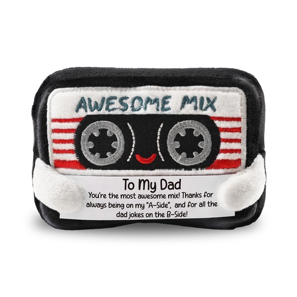 - THE ULTIMATE "AWESOME MIX" FOR DAD: Finally, a gift as cool and funny as he is! This retro cassette tape plush is the perfect funny gift for Dad, celebrating him as the "most awesome mix" of love, support, and hilarious dad jokes.