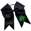Funny Girl Designs Personalized Custom Hair Bow with Sequin Shamrock and Glitter Text - Design Your Own (Black Bow)