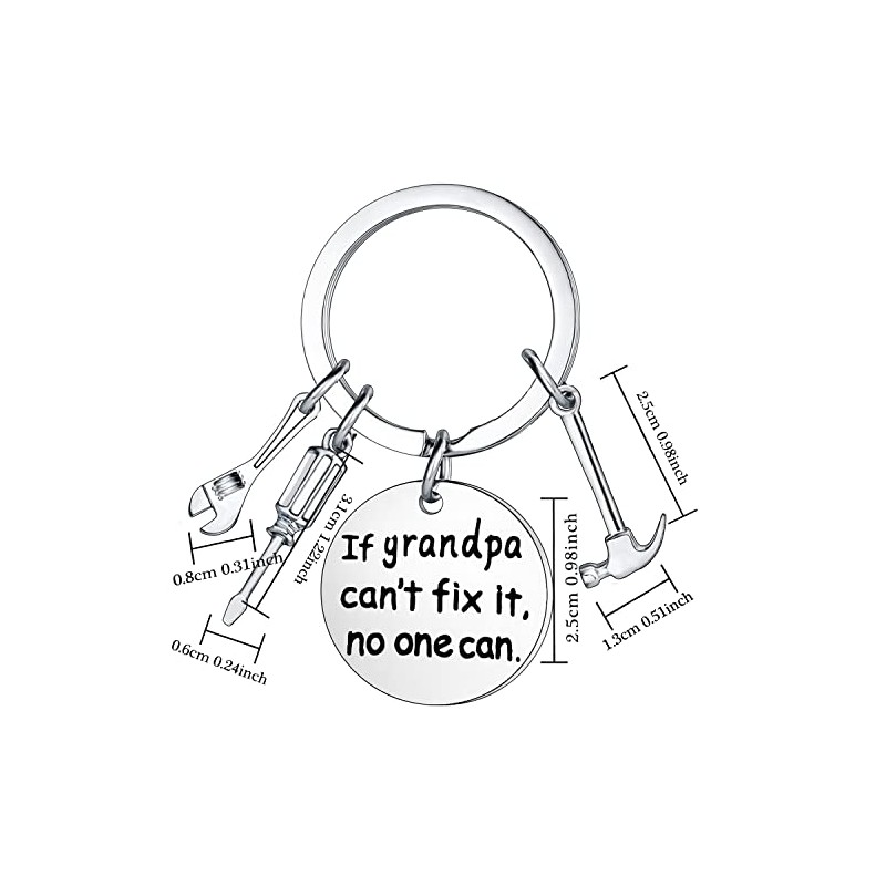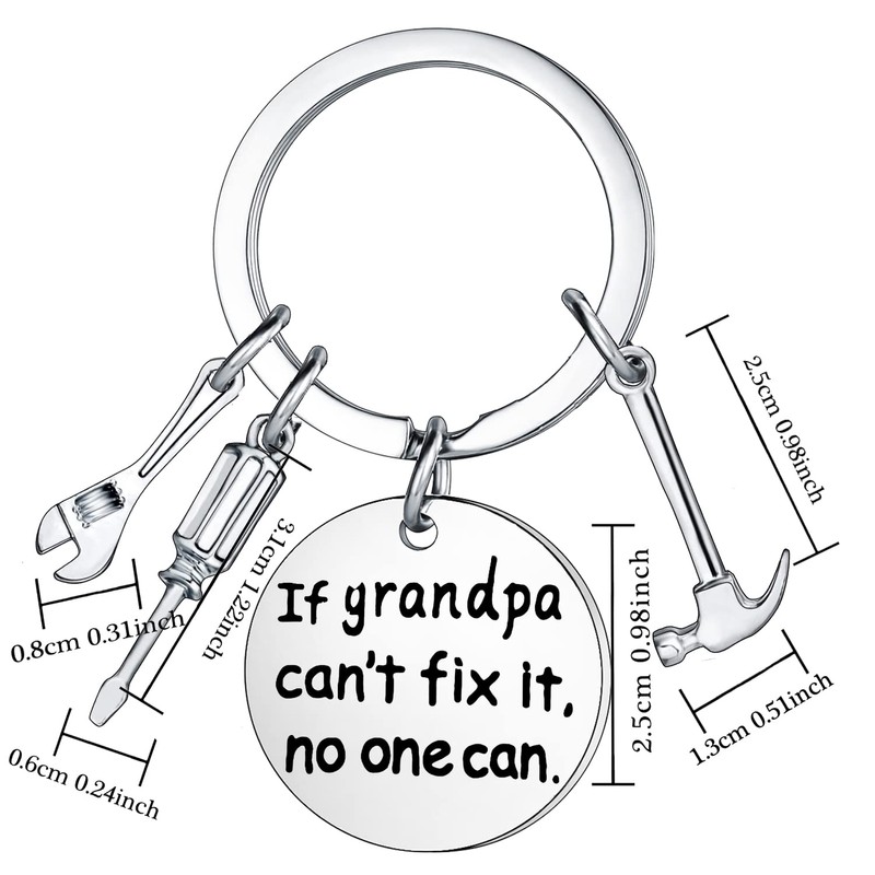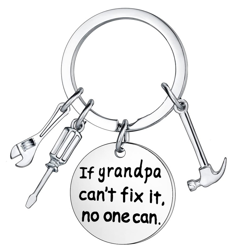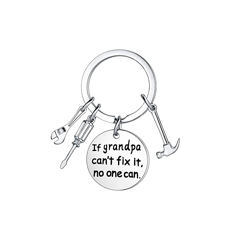 - Funny grandpa keychain "If Grandpa Can't Fix it No One Can." This keychain is special for you to express thanks and love to your grandpa. There’s no better present as the words from heart that may bring touch and tears to him.
