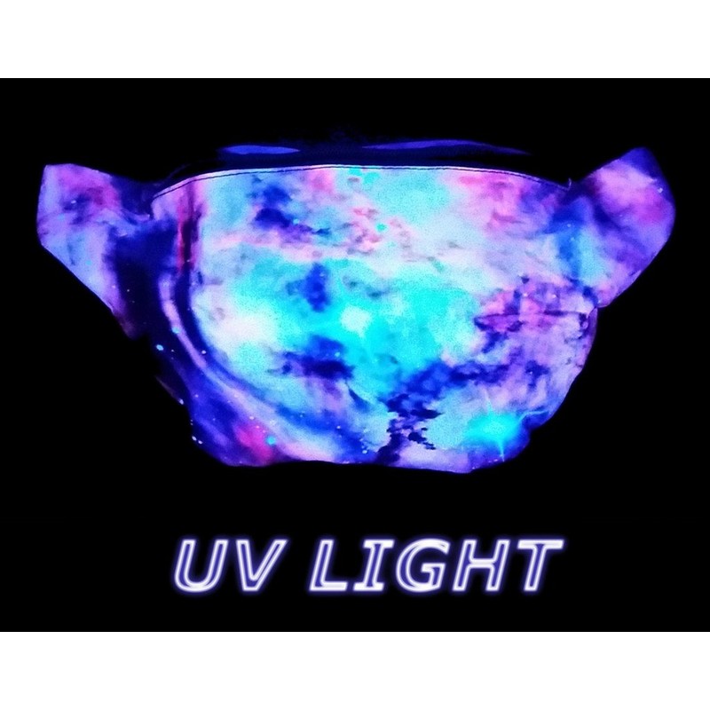 - CUSTOM ARTWORK IMPRINTED FOR BOTH REGULAR & UV LIGHT: Do Not Settle For Anything Less! Great Glowing Effect That Is Perfect For Raves, Concerts, Halloween Parties, Theme Parks or Any Situation A Blacklight Is Present. Please Note The Artwork & Fanny Pack Are Only Blacklight Reactive & Will Not Glow In The Dark.