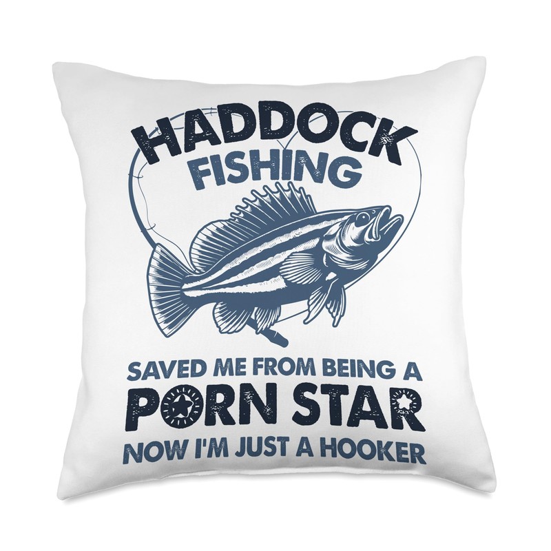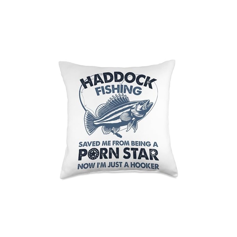Funny Haddock Fishing Gift for Men & Women Saved Hooker Star Fisher-Fish Haddock Throw Pillow, 18x18, Multicolor