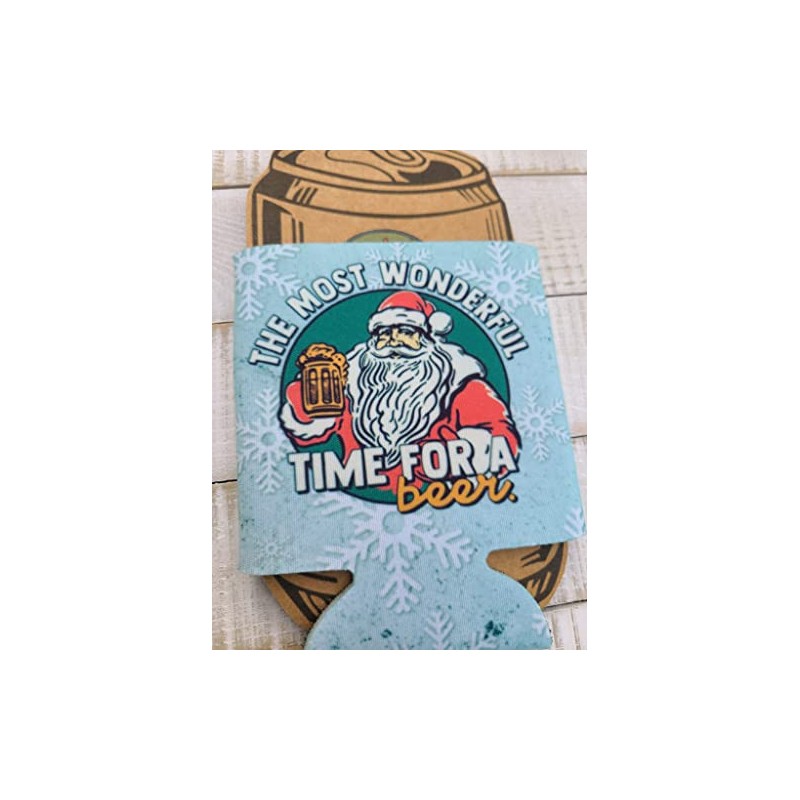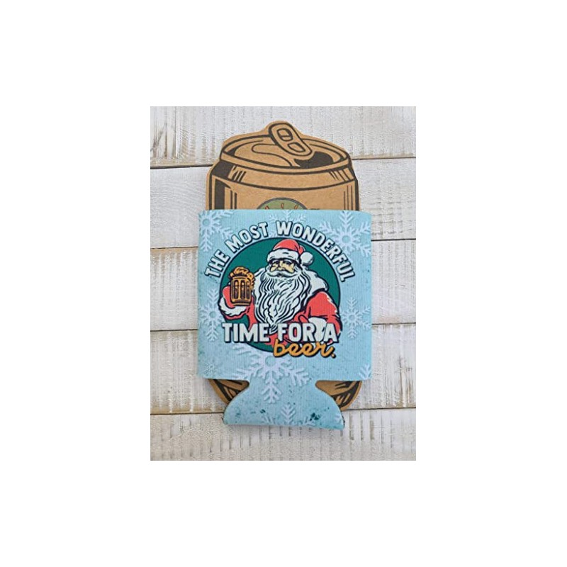 Funny Holiday Merry Christmas Coozie Gift Can Bottle Drink Most Wonder Time for Cooler Hilarious Gag Party Favors Naughty List Bad Santa Claus XMASBEERTIME (Regular Can)