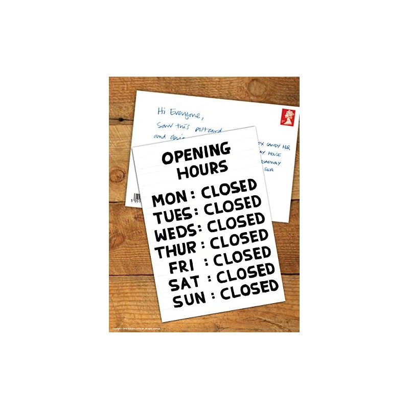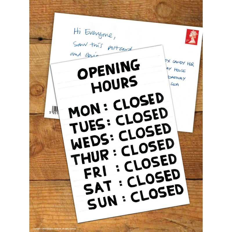 Funny Humorous 'David Shrigley Opening Hours' Novelty Postcard