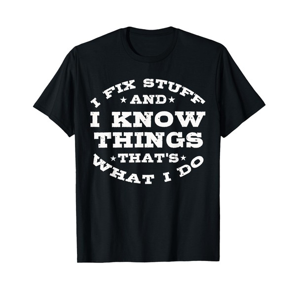 • The novelty item with the humorous quote I FIX STUFF AND I KNOW THINGS THAT'S WHAT I DO is nice for any handyman, tech-support repairman, Mr. Fix It, garage lover, mechanic, electrician, engineer, plumber, contractor, carpenter, or car repair or tool guy.