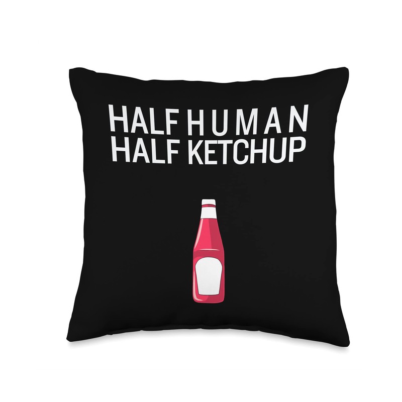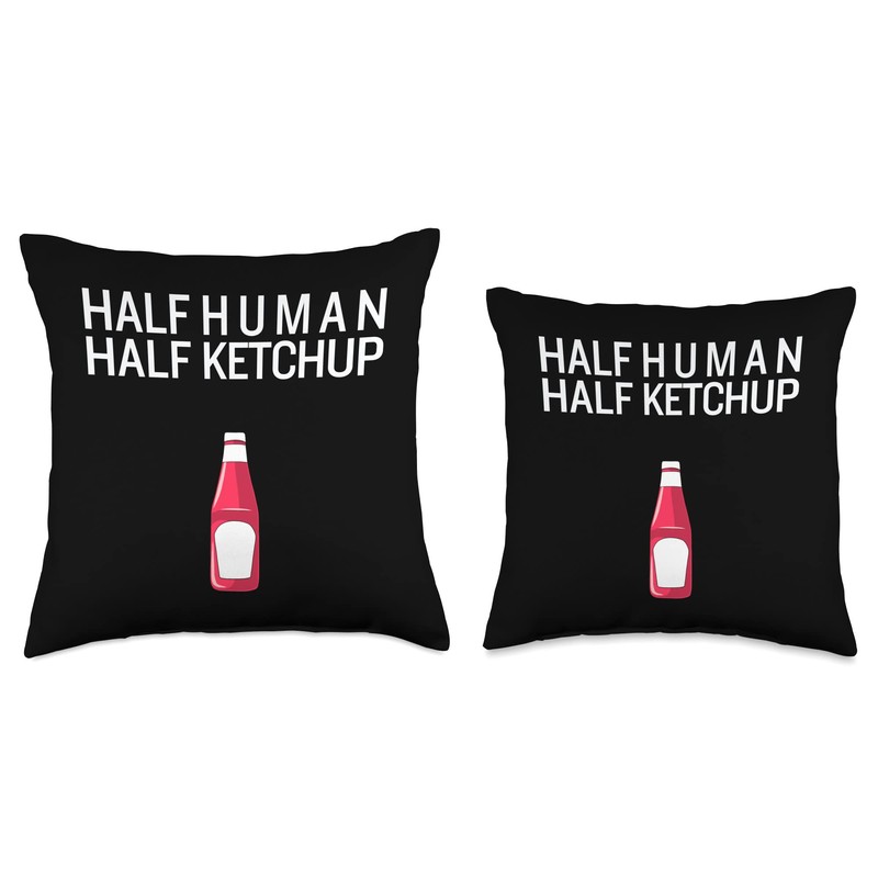 Funny Ketchup Lover Fast Food Addict Half Human Half Ketchup Throw Pillow